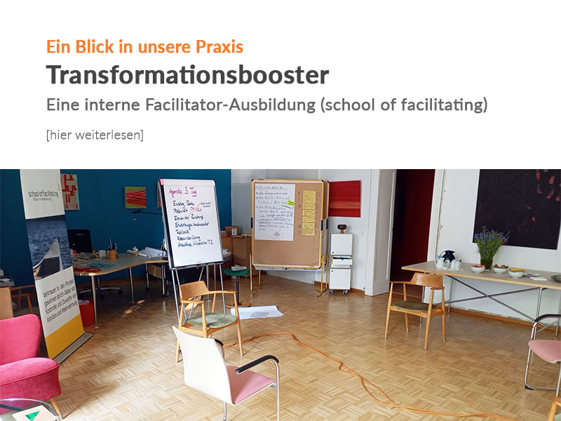 Blended Learning | Führungskräfteentwicklung | Großgruppen | Impulse | Offene Angebote | Prozessbegleitung | Teamentwicklung | Weiterbildung: Facilitating Change