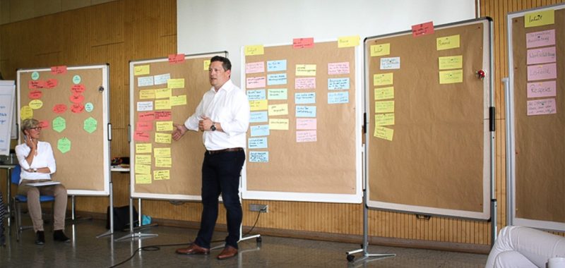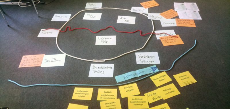 Wie beteiligt man fast 500 Mitarbeitende? Was ist unsere Vision? Wie können verschiedene Entwicklungsstränge in einer dezentralen Organisation wieder neu in einem Zopf zusammengeflochten werden? Was ist eine gesunde Größe für die Organisation? Dies ist ein Teil der weitreichenden Fragen, die in diesem Prozess wir als Moderation begleiten. Die Auftaktveranstaltung mit den Führungskräften hat viele