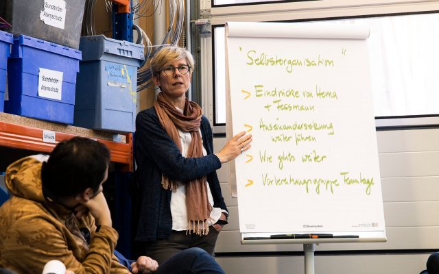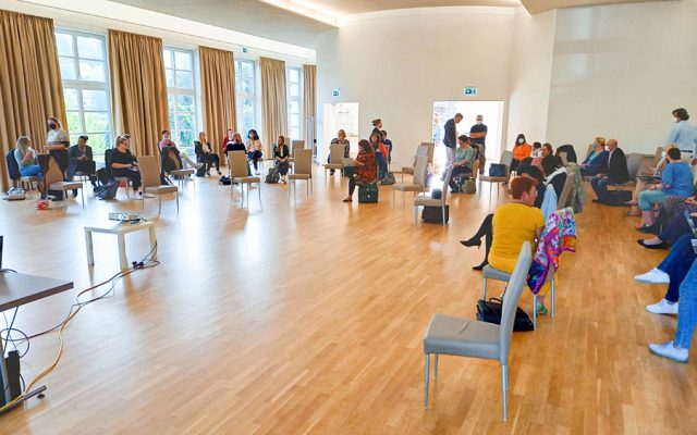 Im Abschlussplenum wurden Aufträge überreicht an sich selbst und andere im Raum. Es ging um das Commitment (4. Connect) der Angesprochenen.