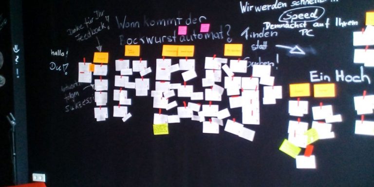 Bei Großveranstaltungen setzten wir immer öfter ein digitales Tool ein, dass ermöglicht Fragestellungen über die Smartphones der Teilnehmenden für alle auf der Leinwand sofort sichtbar zu machen. Bei einer Veranstaltung eines Maschinenbauers gaben 90 Mitarbeitende Ihre Voten gleichzeitig und anonym ab. Ob es um ein Stimmungsbild zwischen verschiedenen Vorschlägen ging, um ein Brainstorming, was weiterbringen
