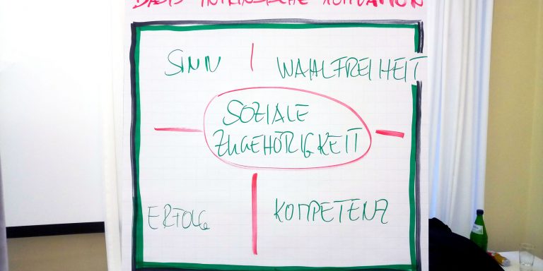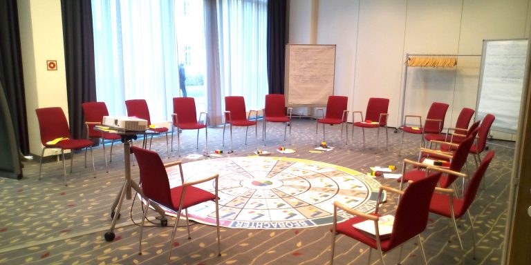 In einem Dreieck wurden verschiedene Kompetenzen gesammelt: Was macht aus Sicht der LiV einen guten Berater*in und einen zufriedenen, was einen professionellen Berater*in aus? Diese Kompetenzen wurden internalisiert und in den Raum innerhalb des Riemann Modells gebracht. Dadurch können sich unterschiedliche Kompetenzen mit ihren Erfahrungen und Bedürfnissen kennen lernen. In einer zweiten Übung ging es