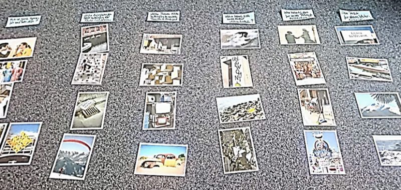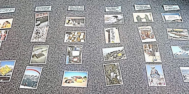 „Wir reden immer so viel. Haben Sie nicht auch mal eine Methode, die uns irgendwie anders ins Gespräch führt?“ Das war die Frage einer Führungskraft im sechsten Modul „Change / Transformation“ eines Führungskräfteentwicklungs-Programms. Wir nutzen A5 großen Bildkarten. „Suchen Sie sich jeweils ein Bild aus: 1. Wie Sie das IST erleben (bei sich, in ihrer