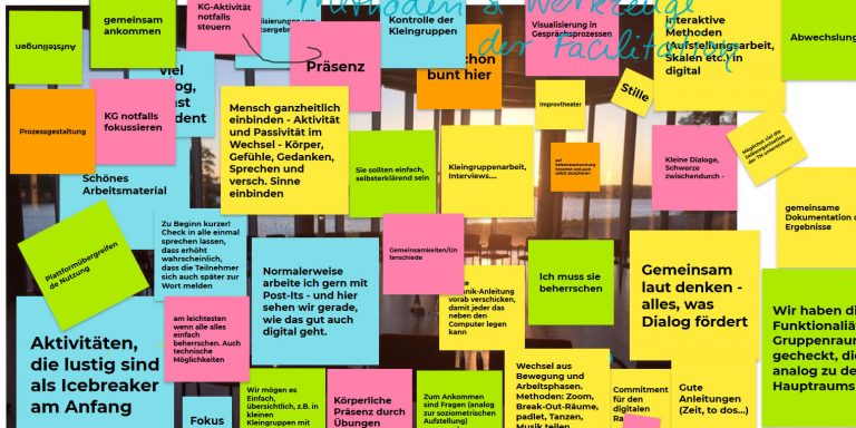 Auf einem digitalen Board haben wir mit den Teilnehmenden Fragen gesammelt. Fragen, die klären, die in die Tiefe oder nach Vorne führen, die auf den Punkt bringen oder die Kreativität anregen. Die Idee stammt aus einem unserer Lieblingsbücher zu diesem Thema: Amelie Funcke, Axel Rachow : „Die Fragen-Kollektion: Was ist Ihre Lieblingsfrage? Einfache und raffinierte