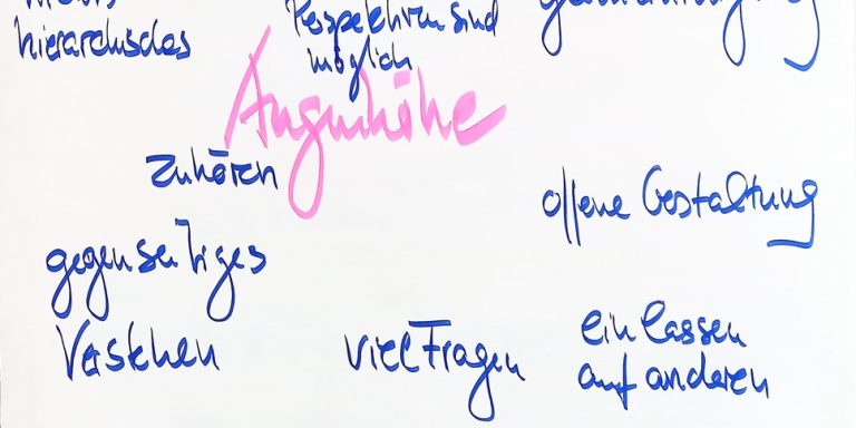 Bevor wir mit inhaltlichen Themen starten, ist es gut in Verbindung mit sich und den anderen im Raum zu kommen. Eine Möglichkeit dazu ist zu den folgenden Fragen von sich zu erzählen bzw. den anderen eine Rückmeldung zu geben: Wo habe ich mich/dich mutig erlebt? Was/wem gegenüber empfinde ich mich/dich zugewandt? Was erfüllt mich/dich mit