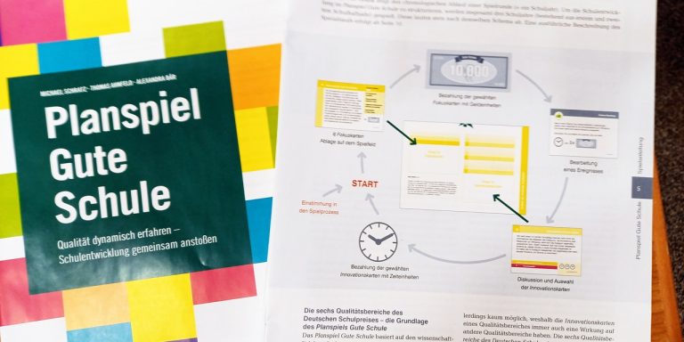 Die Qualitätskriterien für „gute Schule“ – einem Planspiel der Robert Bosch Stiftung – sind Verantwortung, Umgang mit Vielfalt, Leistung, Schulklima, Unterrichtsqualität und Schule als lernende Institution. Auf Fokuskarten gibt es dazu jede Menge Anregungen diese praktisch in die Schule zu integrieren. Geld und Zeiteinheiten sind wie im wahren Leben begrenzt und müssen Weise eingesetzt werden.