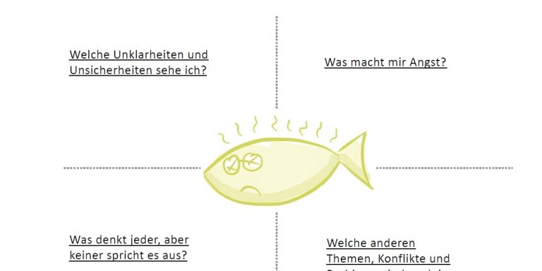 Die Übung „Stinky Fish“ lädt die Teilnehmenden dazu ein, Probleme zu identifizieren und Dinge ans Tageslicht zu bringen, über die sonst nicht gesprochen wird. Je länger Probleme unausgesprochen bleiben, umso „stinkender wird der Fisch“, d.h. das Konfliktpotenzial steigt. Einige Probleme können individueller Natur sein, andere sind teambezogen. Viele davon könnten auf systemische Unternehmensprobleme zurückzuführen sein.